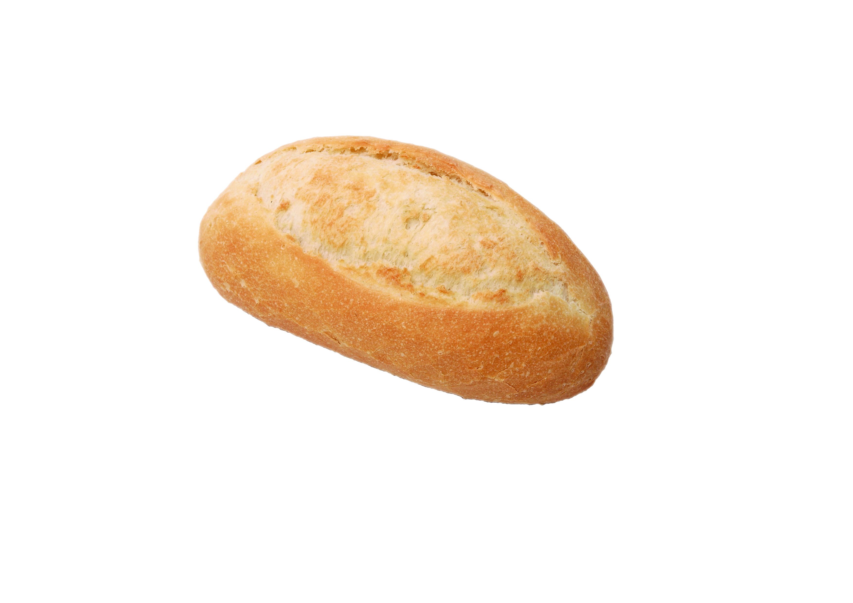 Malá biela bageta s jedným rezom na povrchu. Čerstvá bageta je chrumkavá a prepečená.