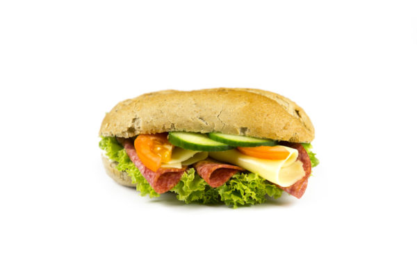 Tmavá chrumkavá bageta s príjemne vyváženou cesnakovou nátierkou a kvalitnou salámou.